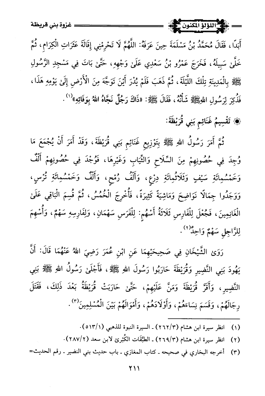 (¬3) أخرجه الحاكم في المستدرك - كتاب المغازي والسرايا - باب قتل امرأة من بني قريظة - رقم الحديث (4390) - وأخرجه أبو داود في سننه - كتاب الجهاد - باب في قتل النساء - رقم الحديث (2671) - وابن إسحاق في السيرة (3/ 266).