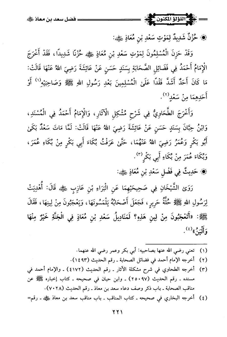 (¬1) في صحيح البخاري - كتاب المناقب - باب مناقب سعد بن معاذ -رضي اللَّه عنه- رقم الحديث (3803) - وصحيح مسلم - كتاب فضائل الصحابة - باب من فضائل سعد بن معاذ -رضي اللَّه عنه- رقم الحديث (2466).