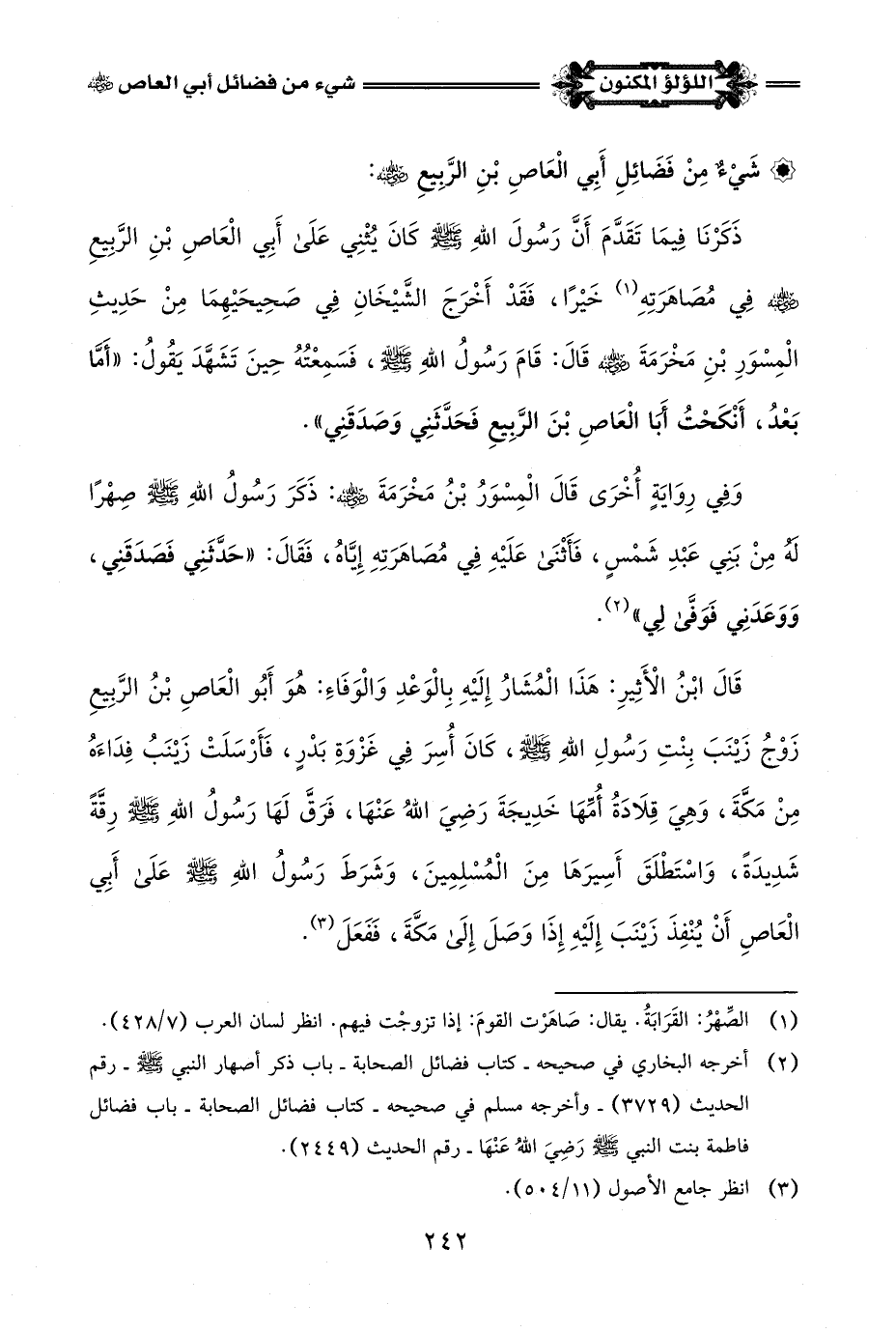 (¬4) أخرجه الحاكم في المستدرك - كتاب معرفة الصحابة - باب ذكر أبي العاص بن الربيع -رضي اللَّه عنه- رقم الحديث (6751).