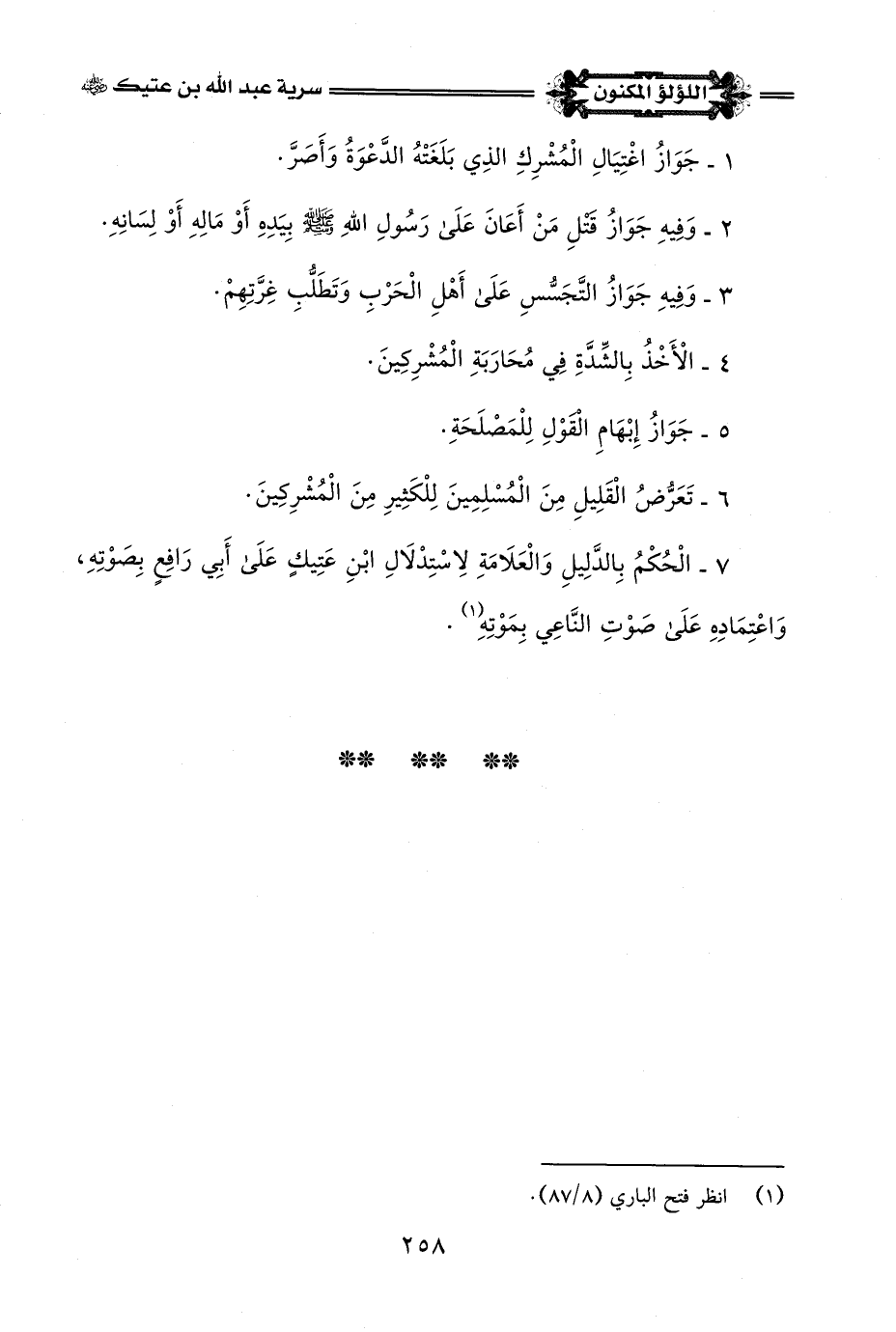 قَالَ الحَافِظُ فِي الفَتْحِ: وَفِي قِصَّةِ أَبِي رَافِعٍ مِنَ الْفَوَائِدِ: