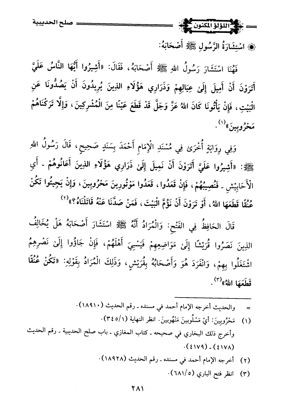 (¬2) أخرج ذلك البخاري في صحيحه - كتاب المغازي - باب صلح الحديبية - رقم الحديث (4178) (4179).