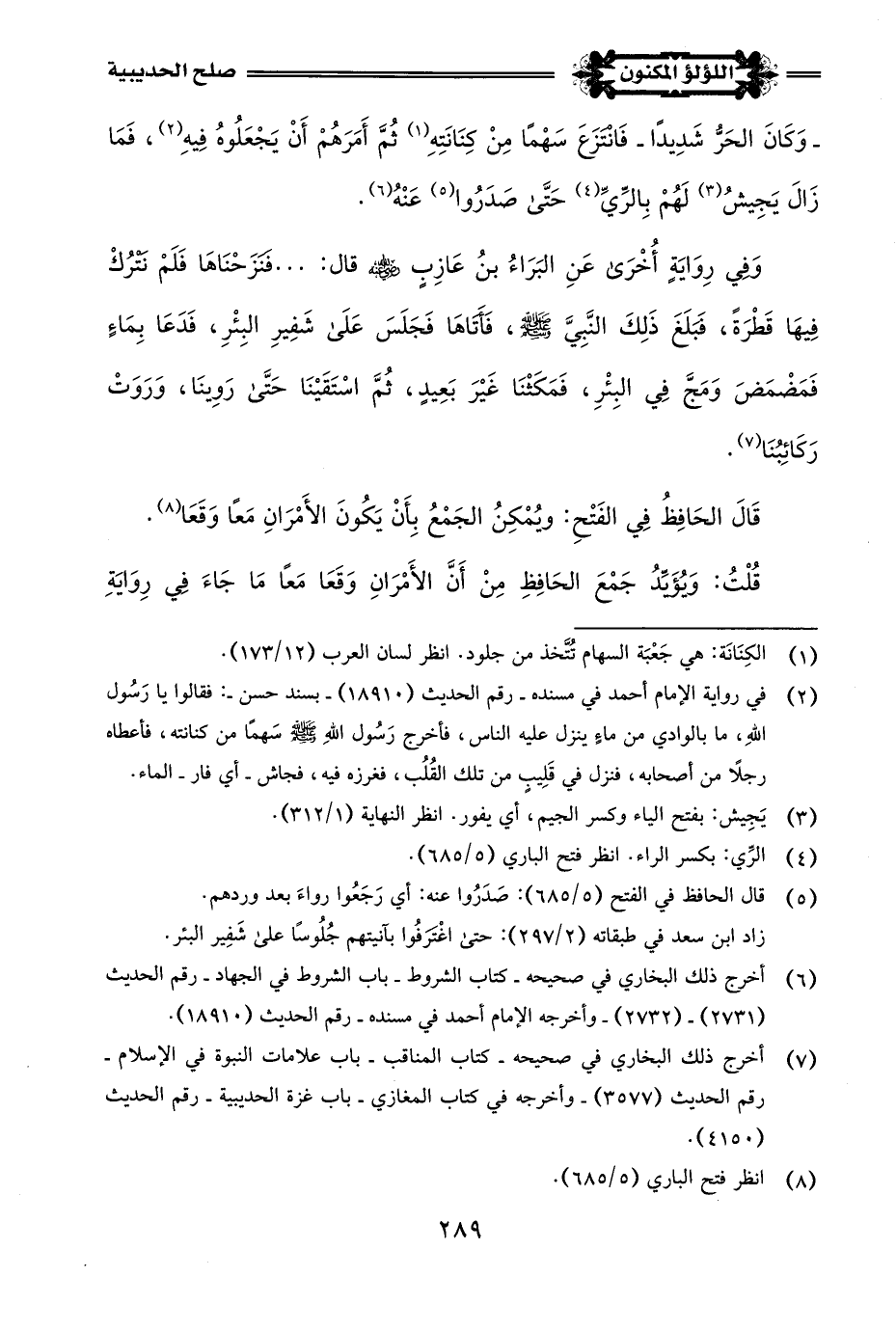 (¬9) النَّزَح: بالتحريك البئر التي أُخذ ماؤها، والمراد: أنهم لم يُبقوا من الماء شيئًا. انظر النهاية (5/ 34).