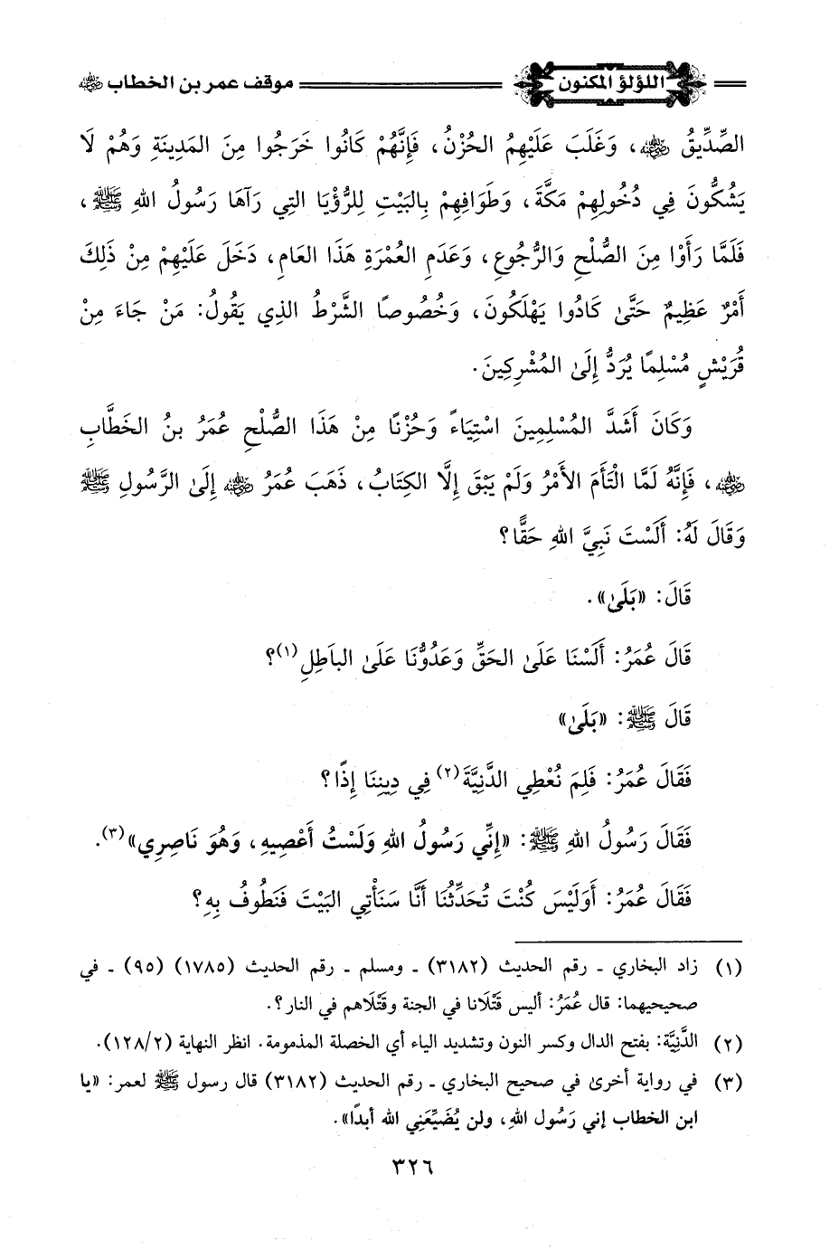* حُزْنُ المُسْلِمِينَ مِنْ شرُوطِ الصُّلْحِ وَمَوْقِفُ عُمَرَ -رضي اللَّه عنه-: