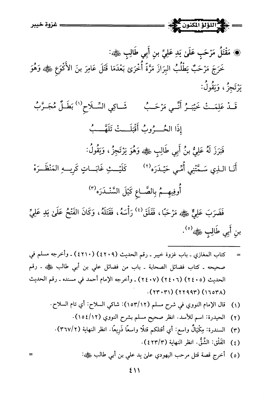 وأخرج خبر إعطاء الرسول -صلى اللَّه عليه وسلم- لعلي -رضي اللَّه عنه- الراية يوم خيبر: البخاري في صحيحه - كتاب الجهاد والسير - باب ما قيل في لواء النبي -صلى اللَّه عليه وسلم- رقم الحديث (2975) - وأخرجه في =