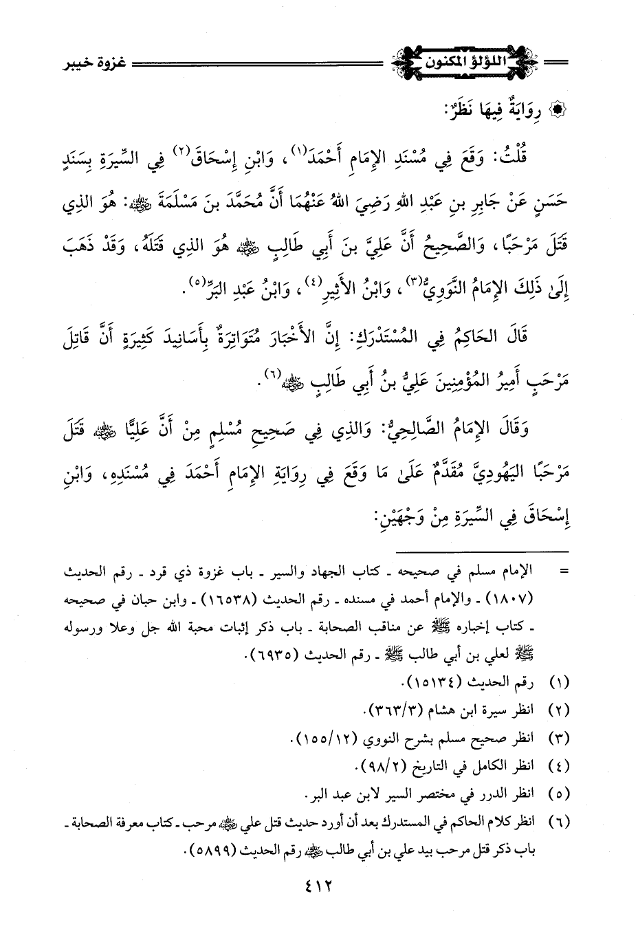 (¬5) أخرج قصة قتل مرحب اليهودي علي يد علي بن أبي طالب -رضي اللَّه عنه-: =