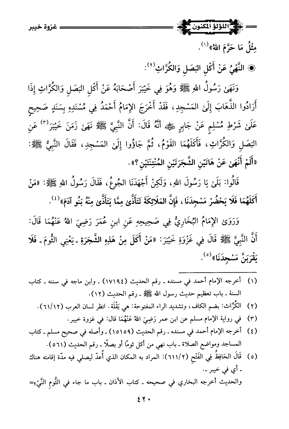 * النَّهْيُ عَنْ أَكْلِ البَصَلِ وَالكُرَّاثِ (¬3):