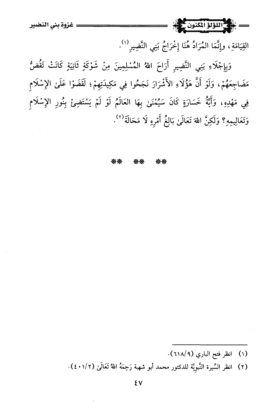 (¬4) أخرجه البخاري في صحيحه - كتاب المغازي - باب حديث بني النضير - رقم الحديث (4030) - وأخرجه مسلم في صحيحه - كتاب الجهاد والسير - باب رد المهاجرين إلى الأنصار منائحهم - رقم الحديث (1771) (71) - وأخرجه الإمام أحمد في مسنده - رقم الحديث (13291).