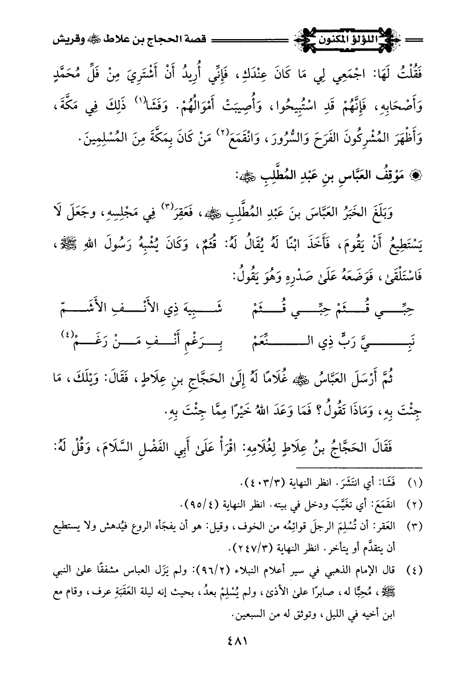(¬4) قال الإِمام الذهبي في سير أعلام النبلاء (2/ 96): ولم يَزَل العباس مشفقًا على النبي -صلى اللَّه عليه وسلم-، مُحِبًّا له، صابرًا على الأذى، ولم يُسْلِمْ بعدُ، بحيث إنه ليلة العَقَبَةِ عرف، وقام مع ابن أخيه في الليل، وتوثق له من السبعين.