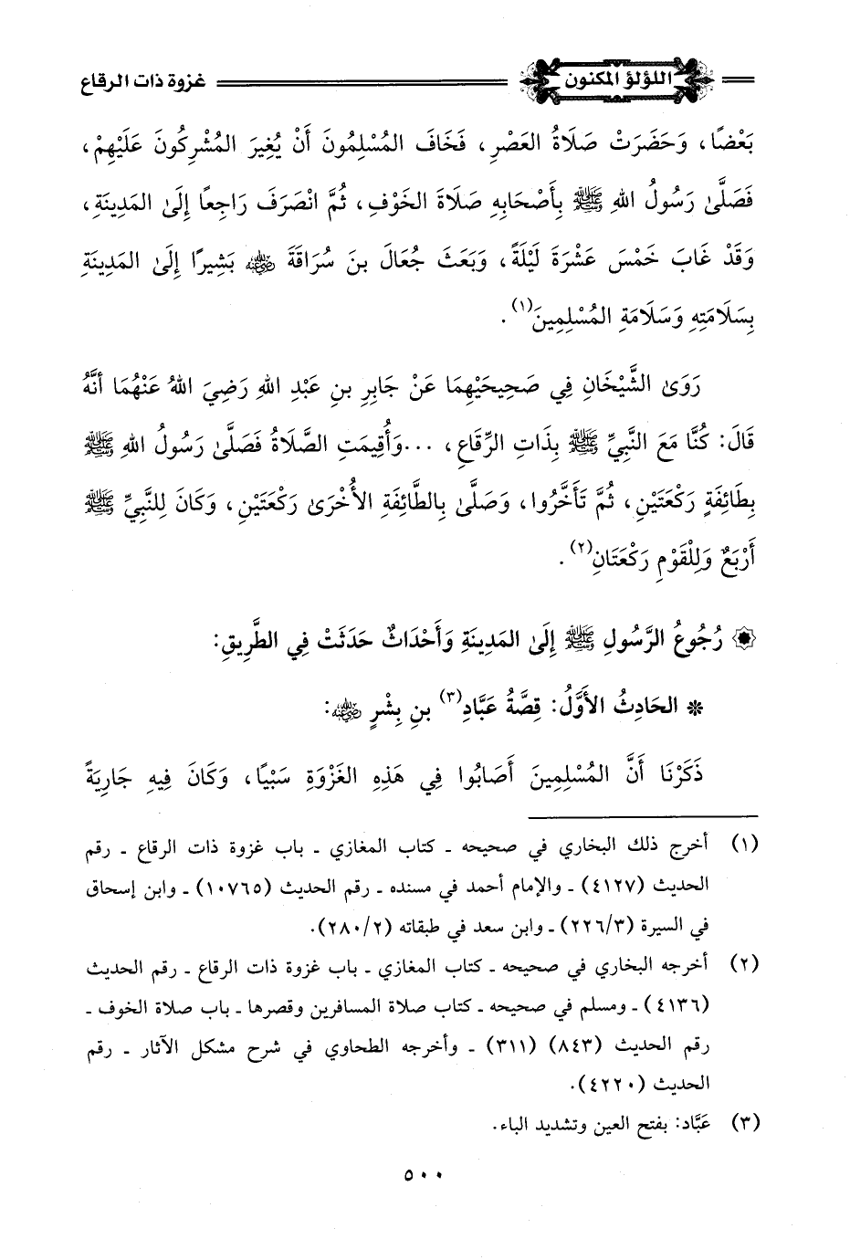 (¬1) أخرج ذلك البخاري في صحيحه - كتاب المغازي - باب غزوة ذات الرقاع - رقم الحديث (4127) - والإمام أحمد في مسنده - رقم الحديث (10765) - وابن إسحاق في السيرة (3/ 226) - وابن سعد في طبقاته (2/ 280).