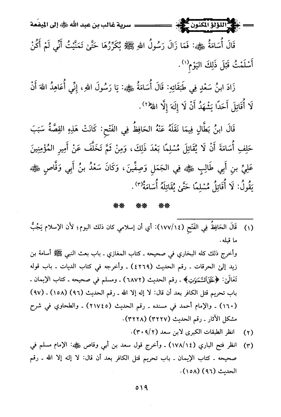 (¬3) انظر فتح الباري (14/ 178) - وأخرج قول سعد بن أبي وقاص -رضي اللَّه عنه-: الإِمام مسلم في صحيحه - كتاب الإيمان - باب تحريم قتل الكافر بعد أن قال: لا إله إِلَّا اللَّه - رقم الحديث (96) (158).