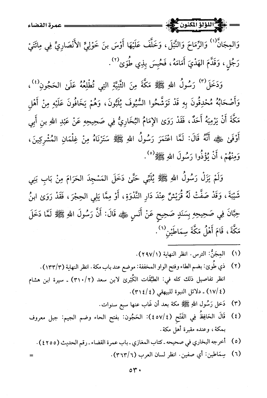 (¬5) أخرجه البخاري في صحيحه - كتاب المغازي - باب عمرة القضاء - رقم الحديث (4255).