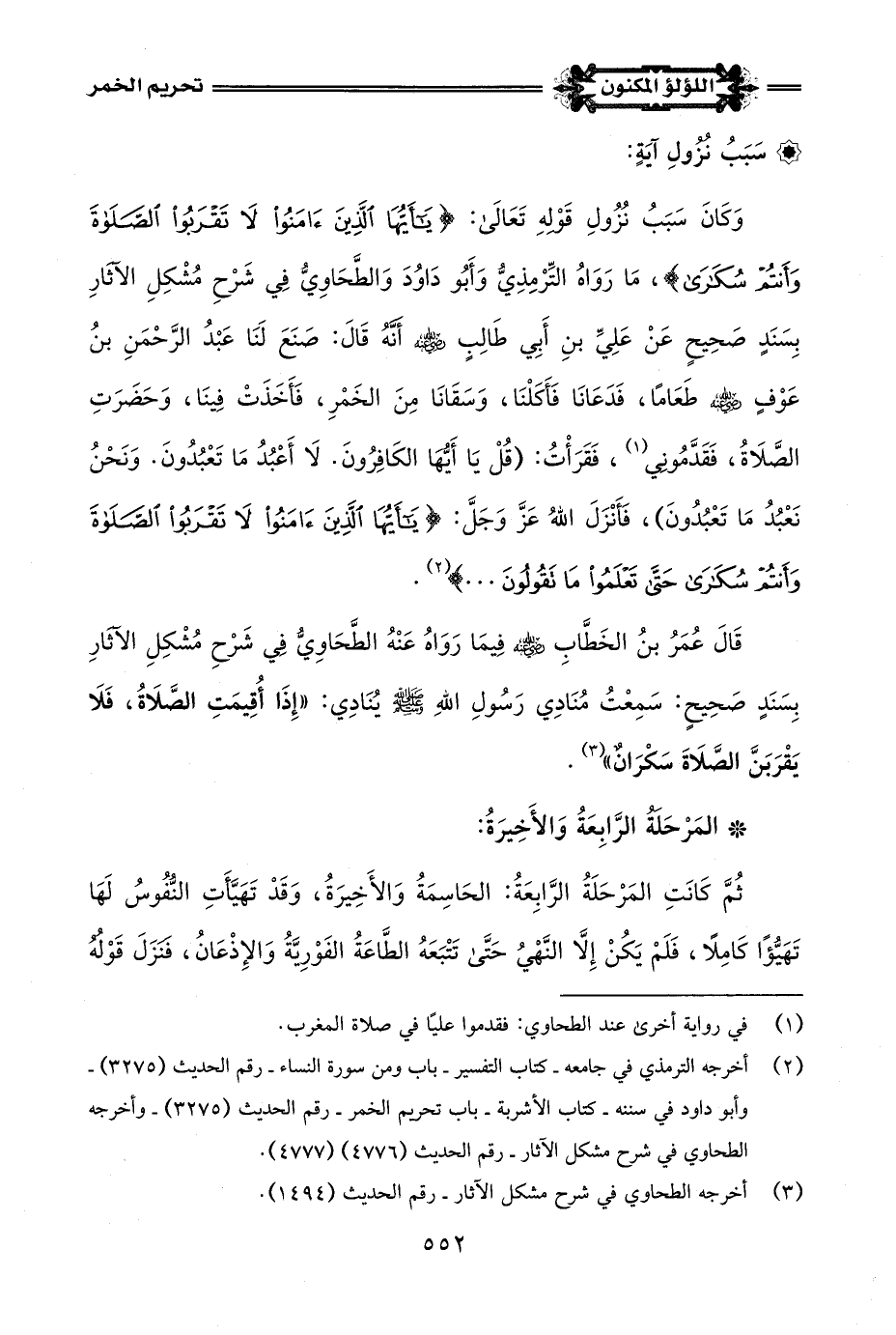 (¬2) أخرجه الترمذي في جامعه - كتاب التفسير - باب ومن سورة النساء - رقم الحديث (3275) - وأبو داود في سننه - كتاب الأشربة - باب تحريم الخمر - رقم الحديث (3275) - وأخرجه الطحاوي في شرح مشكل الآثار - رقم الحديث (4776) (4777).