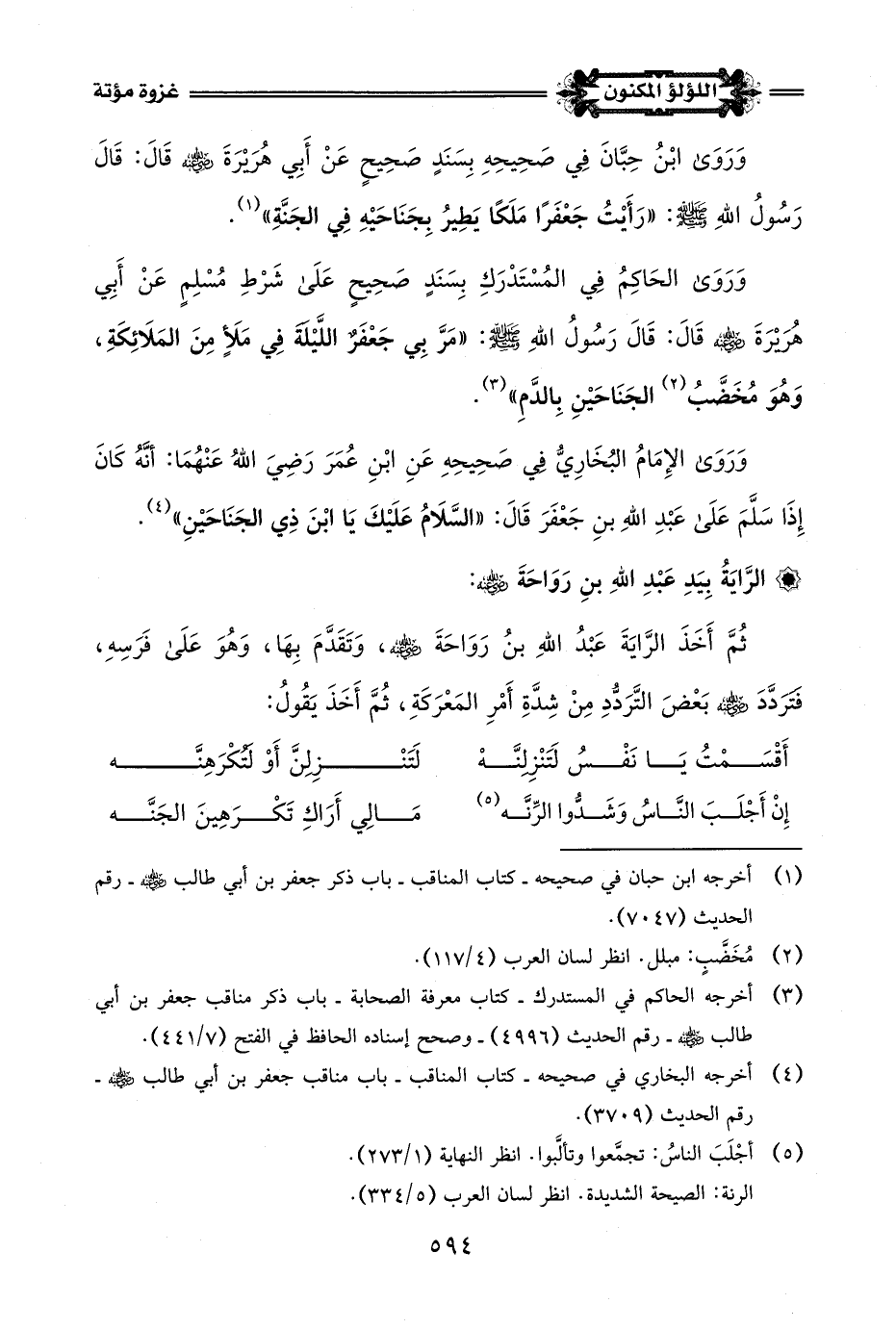 (¬4) أخرجه البخاري في صحيحه - كتاب المناقب - باب مناقب جعفر بن أبي طالب -رضي اللَّه عنه- رقم الحديث (3709).