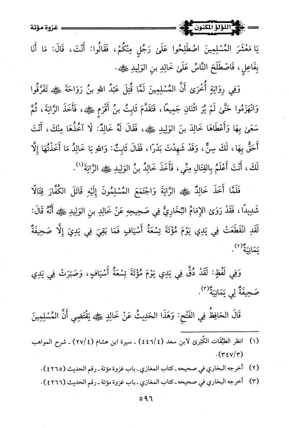 (¬3) أخرجه البخاري في صحيحه - كتاب المغازي - باب غزوة مؤتة - رقم الحديث (4266).