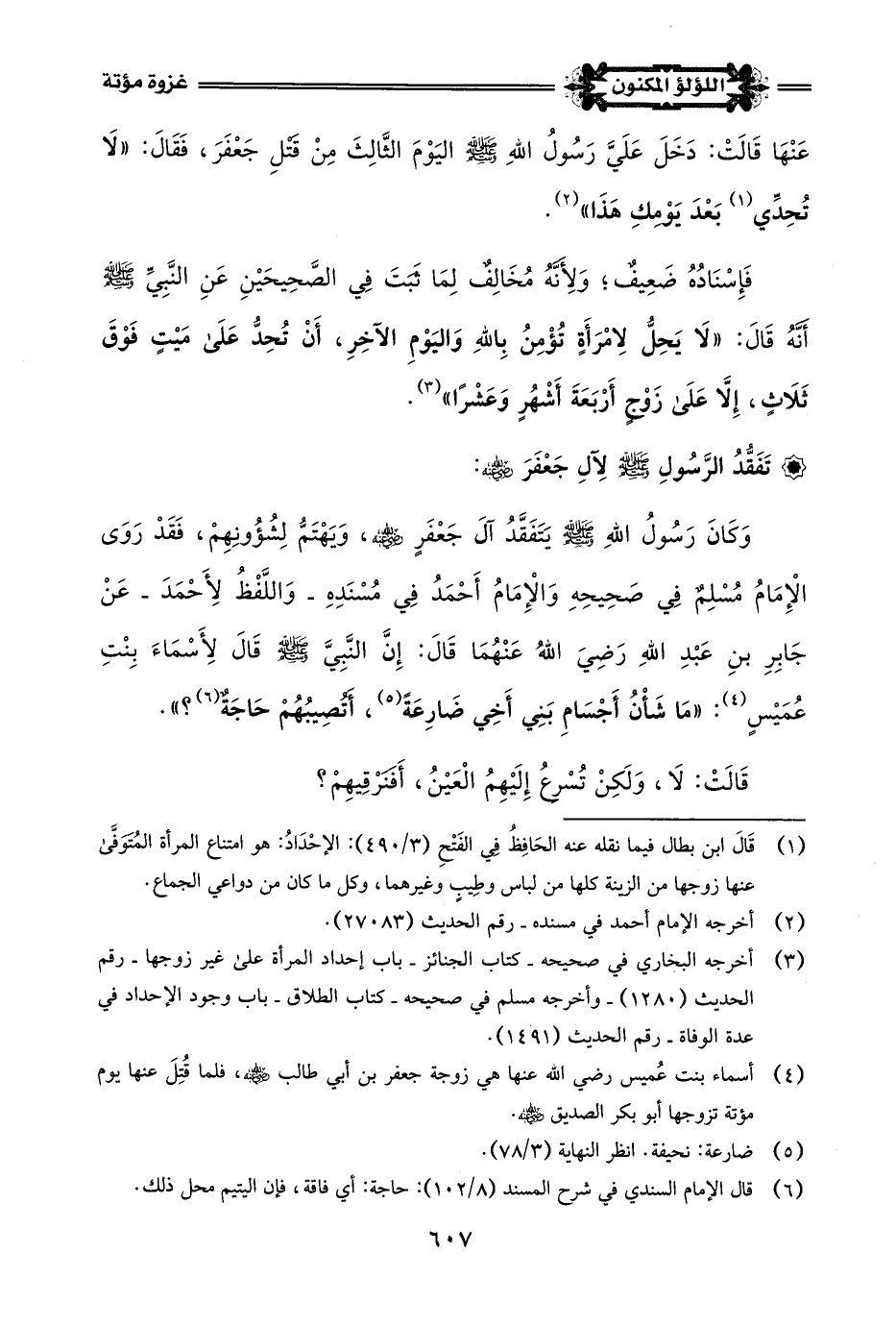 (¬3) أخرجه البخاري في صحيحه - كتاب الجنائز - باب إحداد المرأة على غير زوجها - رقم الحديث (1280) - وأخرجه مسلم في صحيحه - كتاب الطلاق - باب وجود الإحداد في عدة الوفاة - رقم الحديث (1491).