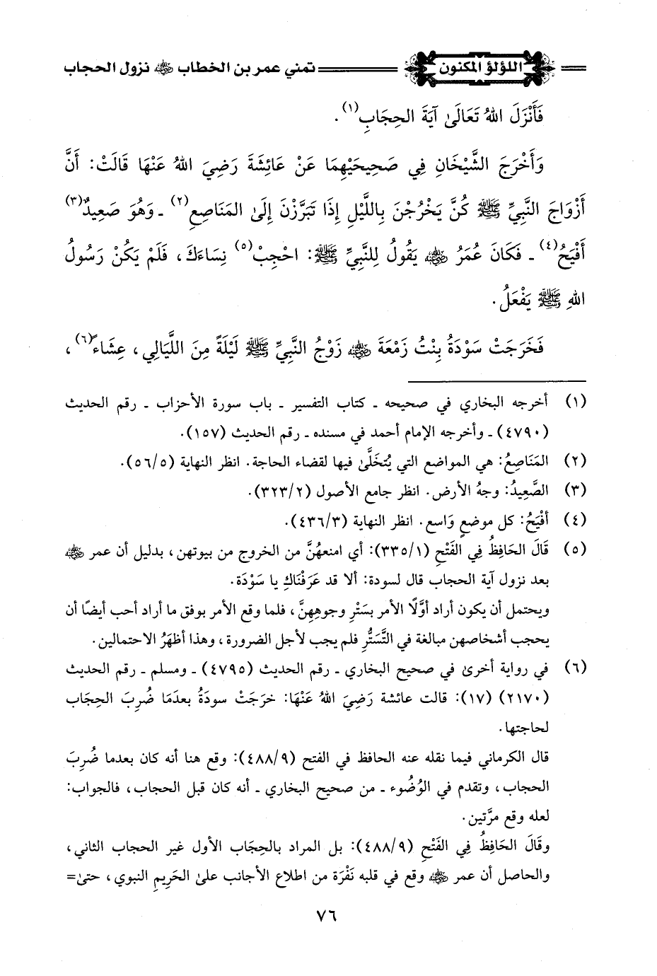 (¬3) كان عُمْرُ أنس -رضي اللَّه عنه- أربعَ عشرَةَ سَنَة؛ لأن نزول الحجاب في ذي القعدة من السنة الرابعة للهجرة كما قَالَ الحَافِظ في الفَتْحِ (8/ 196).