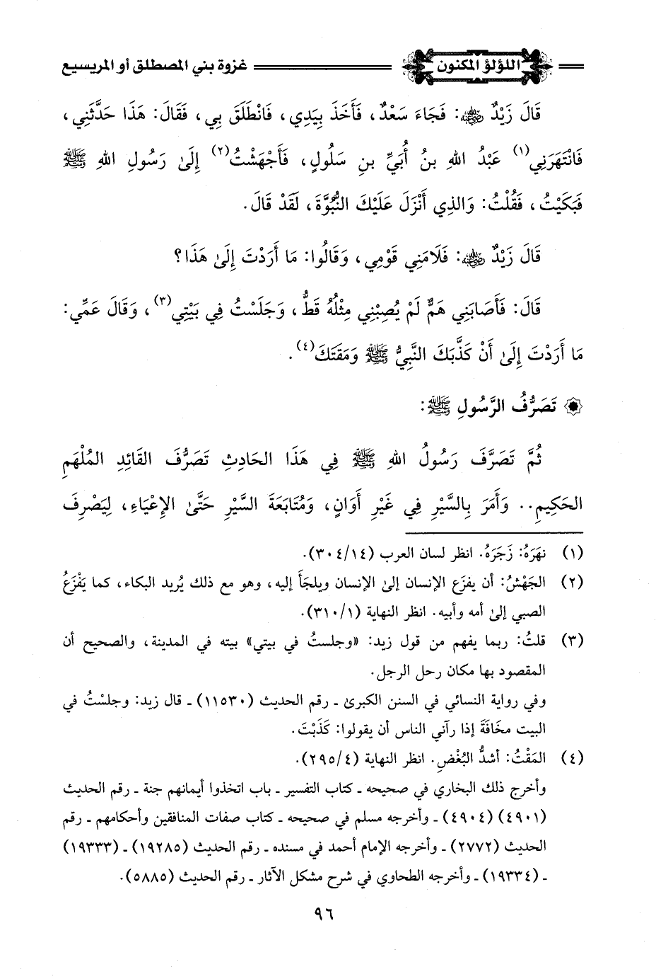 (¬1) أخرج ذلك البخاري في صحيحه - كتاب التفسير - باب قوله تَعَالَى: {وَإِذَا رَأَيْتَهُمْ تُعْجِبُكَ أَجْسَامُهُمْ} - رقم الحديث (4903) - وأخرجه مسلم في صحيحه - كتاب صفات المنافقين وأحكامهم - رقم الحديث (2772) - وأخرجه الترمذي في جامعه - كتاب التفسير - باب ومن سورة المنافقين - رقم الحديث (3599) - وأخرجه الإمام أحمد في مسنده - رقم الحديث (19334) - وابن إسحاق في السيرة (3/ 319).