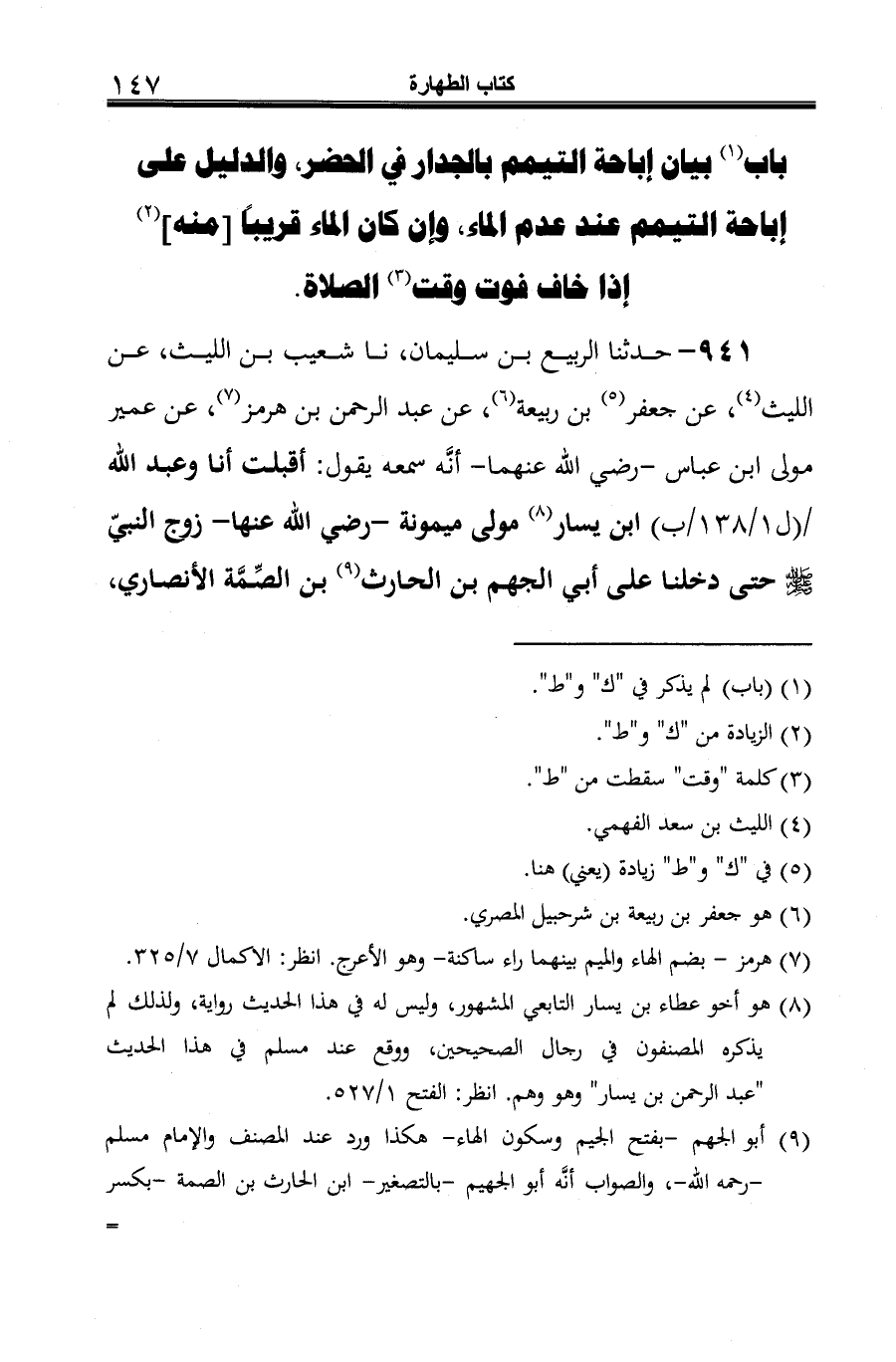(¬9) هو أبو الجهيم الراوي نفسه، انظر: الفتح 1/ 527.
