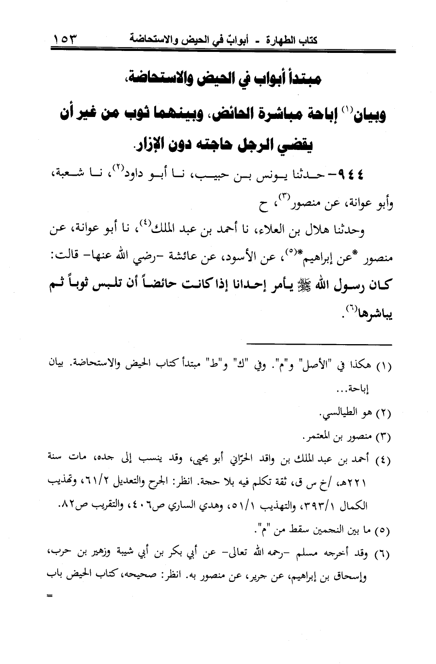-[154]- = مباشرة الحائض فوق الإزار برقم 1، 1/ 242.