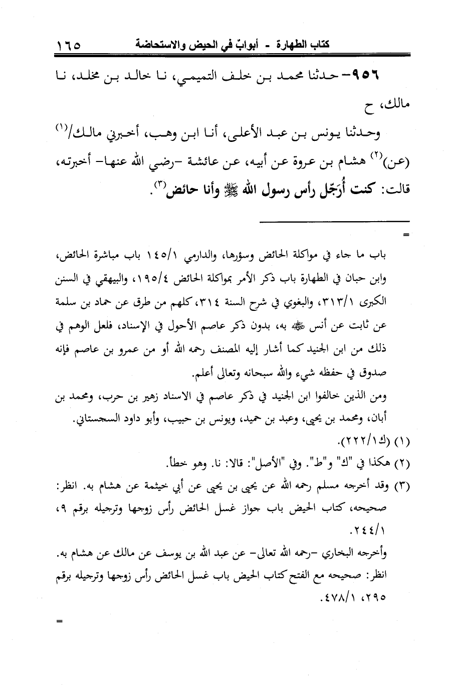 (¬3) وقد أخرجه مسلم رحمه الله عن يحيى بن يحيى عن أبي خيثمة عن هشام به. انظر: صحيحه، كتاب الحيض باب جواز غسل الحائض رأس زوجها وترجيله برقم 9، 1/ 244.
