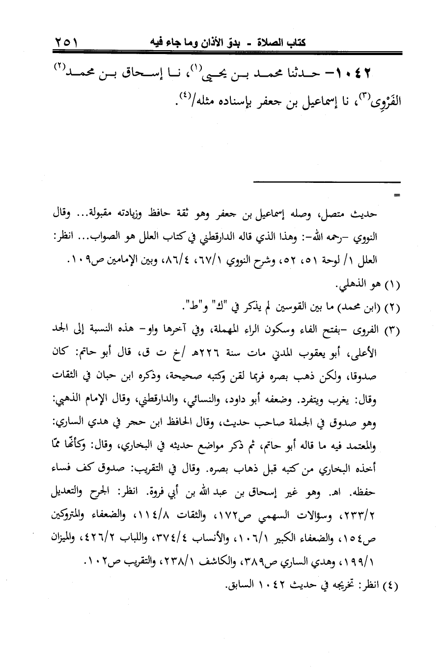 1042 - حدثنا محمد بن يحيى (¬1)، نا إسحاق بن محمد (¬2) الفَرْوِي (¬3)، نا إسماعيل بن جعفر بإسناده مثله (¬4).