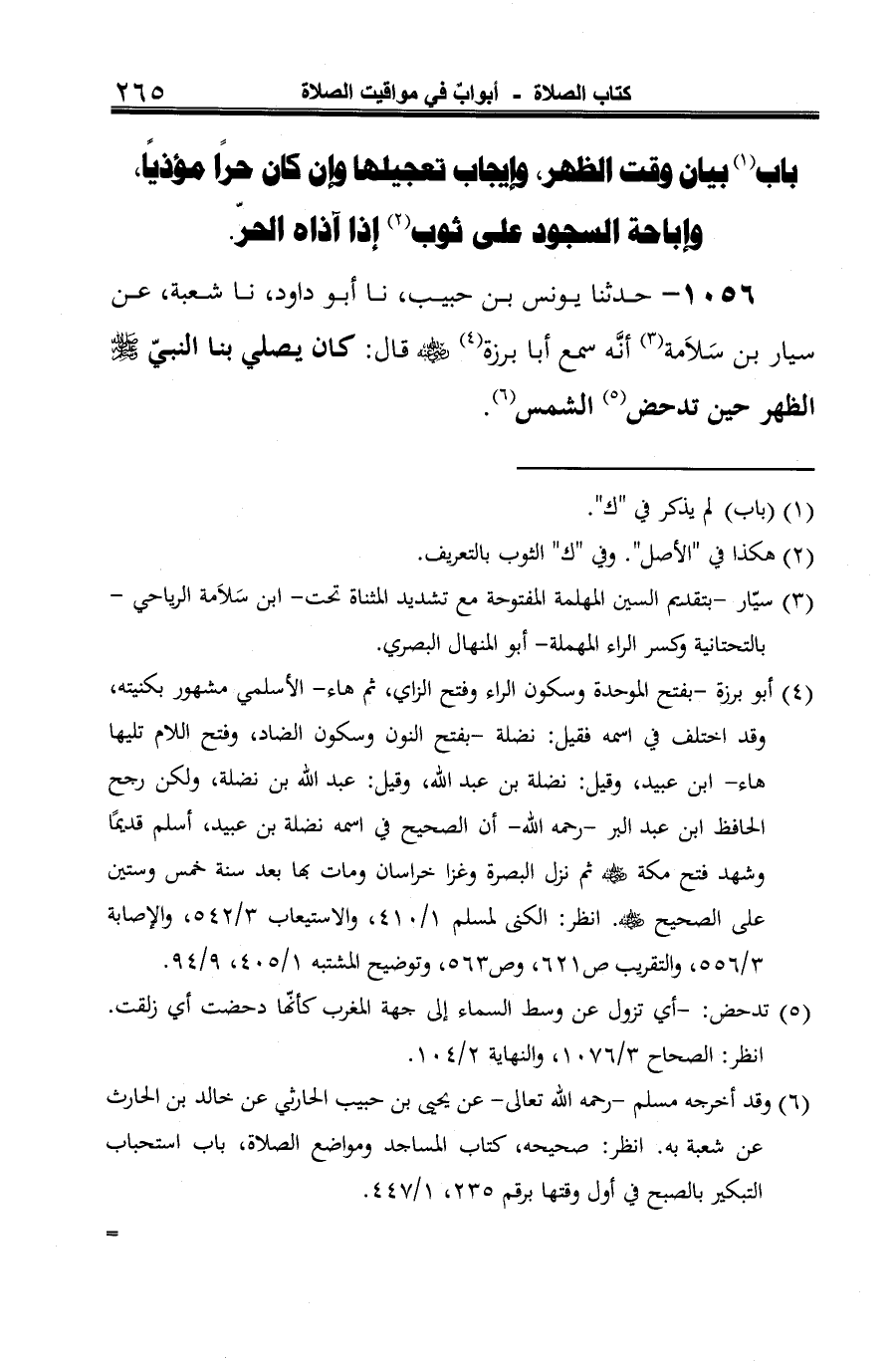 1056 - حدثنا يونس بن حبيب، نا أبو داود، نا شعبة، عن سيار بن سَلاَمة (¬1) أنَّه سمع أبا برزة (¬2) -رضي الله عنه- قال: كان يصلي بنا النبيّ -صلى الله عليه وسلم- الظهر حين تدحض (¬3) الشمس (¬4).