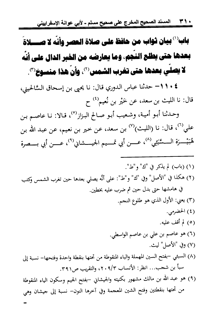 باب (¬1) بيان ثواب من حافظ على صلاة العصر وأنّه لا صلاةَ بعدها حتى يطلع النّجم، وما يعارضه من الخبر الدال على أنّه لا يصلّي بعدها حتى تغرب الشمس (¬2)، وإنّ هذا منسوخ (¬3).