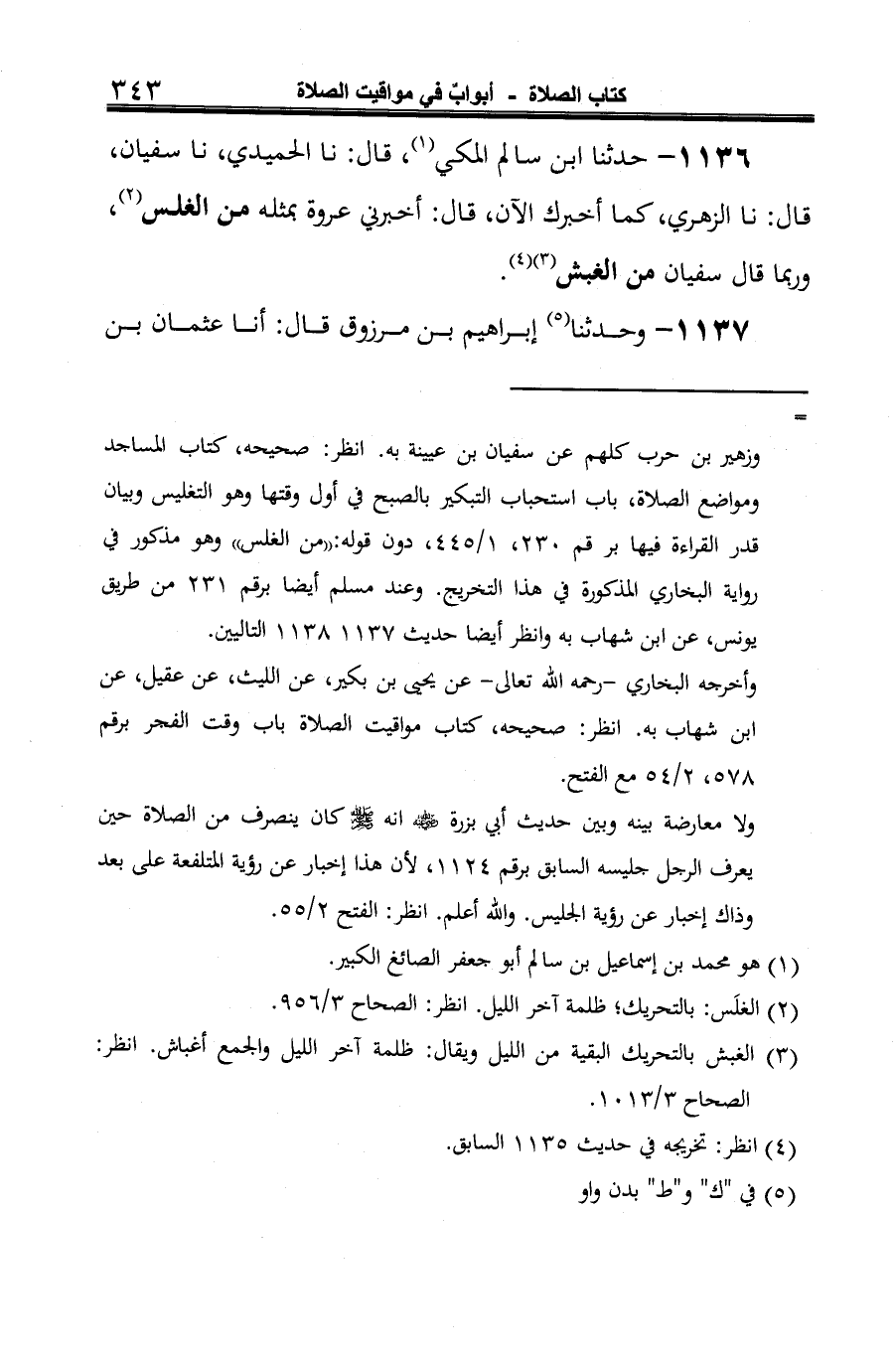 1136 - حدثنا ابن سالم المكي (¬1)، قال: نا الحميدي، نا سفيان، قال: نا الزهري، كما أخبرك الآن، قال: أخبرني عروة بمثله من الغلس (¬2)، وربما قال سفيان من الغبش (¬3) (¬4).
