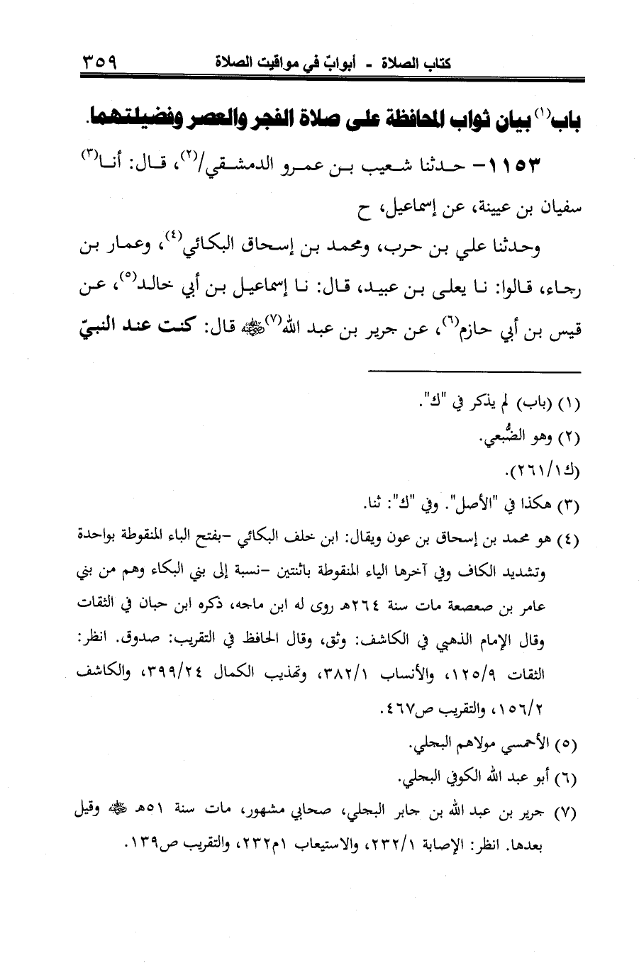 (¬12) وقد أخرجه مسلم -رحمه الله تعالى- عن زهير بن حرب، عن مروان بن معاوية الفزاري، عن إسماعيل بن أبي خالد به. انظر: صحيحه، كتاب المساجد ومواضع الصلاة باب فضل صلاتي الصبح والعصر والمحافظة عليهما برقم 211، 1/ 439.