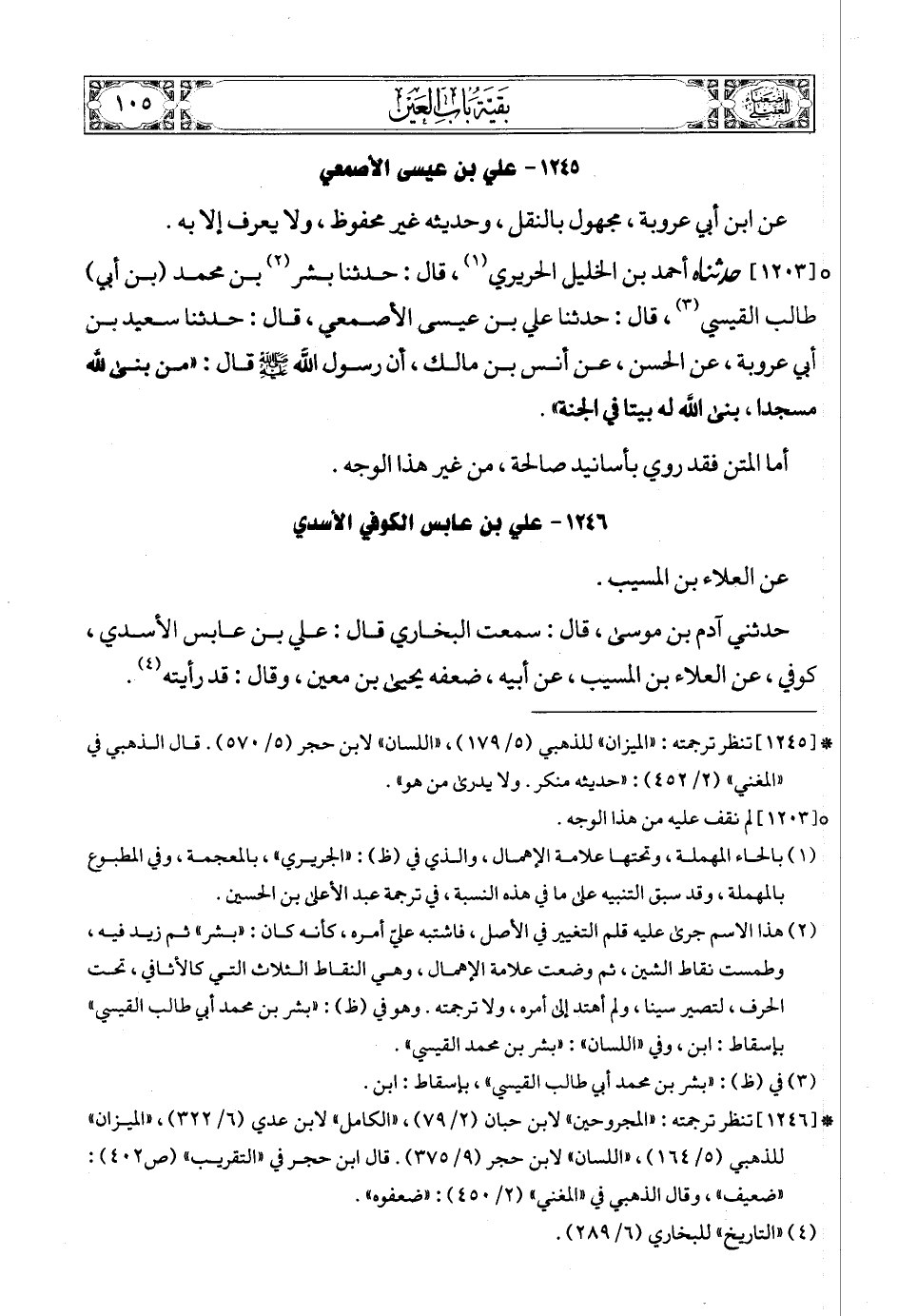 (6) * [1245] تنظر ترجمته: «الميزان» للذهبي (5/ 179) , «اللسان» لابن حجر (5/ 570). قال الذهبي في «المغني» (2/ 452): «حديثه منكر. ولا يدرى من هو».