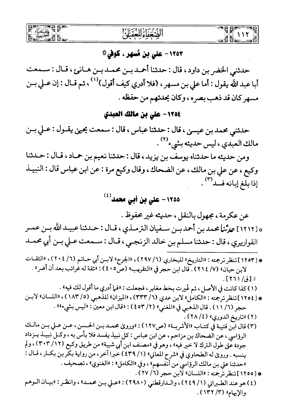 (1) * [1252] تنظر ترجمته: «المجروحين» لابن حبان (2/ 87) , «الكامل» لابن عدي (6/ 353) , «الميزان» للذهبي (5/ 189) , «اللسان» لابن حجر (9/ 376). قال ابن حجر في «التقريب» (ص405): «صدوق له أوهام» , وقال الذهبي في «المغني» (2/ 455): «قال ابن حبان: «لا يحتج بما انفرد به»، وكذا قال أبو حاتم».
