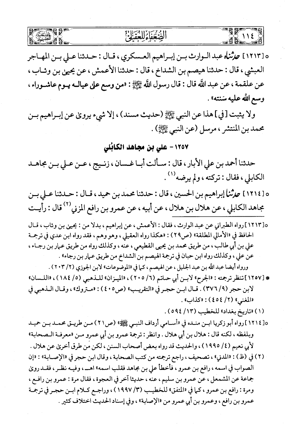 (6) [1213] رواه الطبراني عن عبد الوارث، فقال: الأعمش، عن إبراهيم، بدلا من: يحيى بن وثاب، قال الحافظ في «الأمالي المطلقة» (ص29): «هكذا رواه العقيلي، وهو وهم، فقد رواه ابن عدي في ترجمة علي بن أبي طالب، من طريق محمد بن يحيى القطيعي، عنه، وكذلك رواه من طريق عمار بن رجاء، عن علي، وكذلك رواه ابن حبان في ترجمة الهيصم بن الشداخ من طريق عمار بن رجاء».
