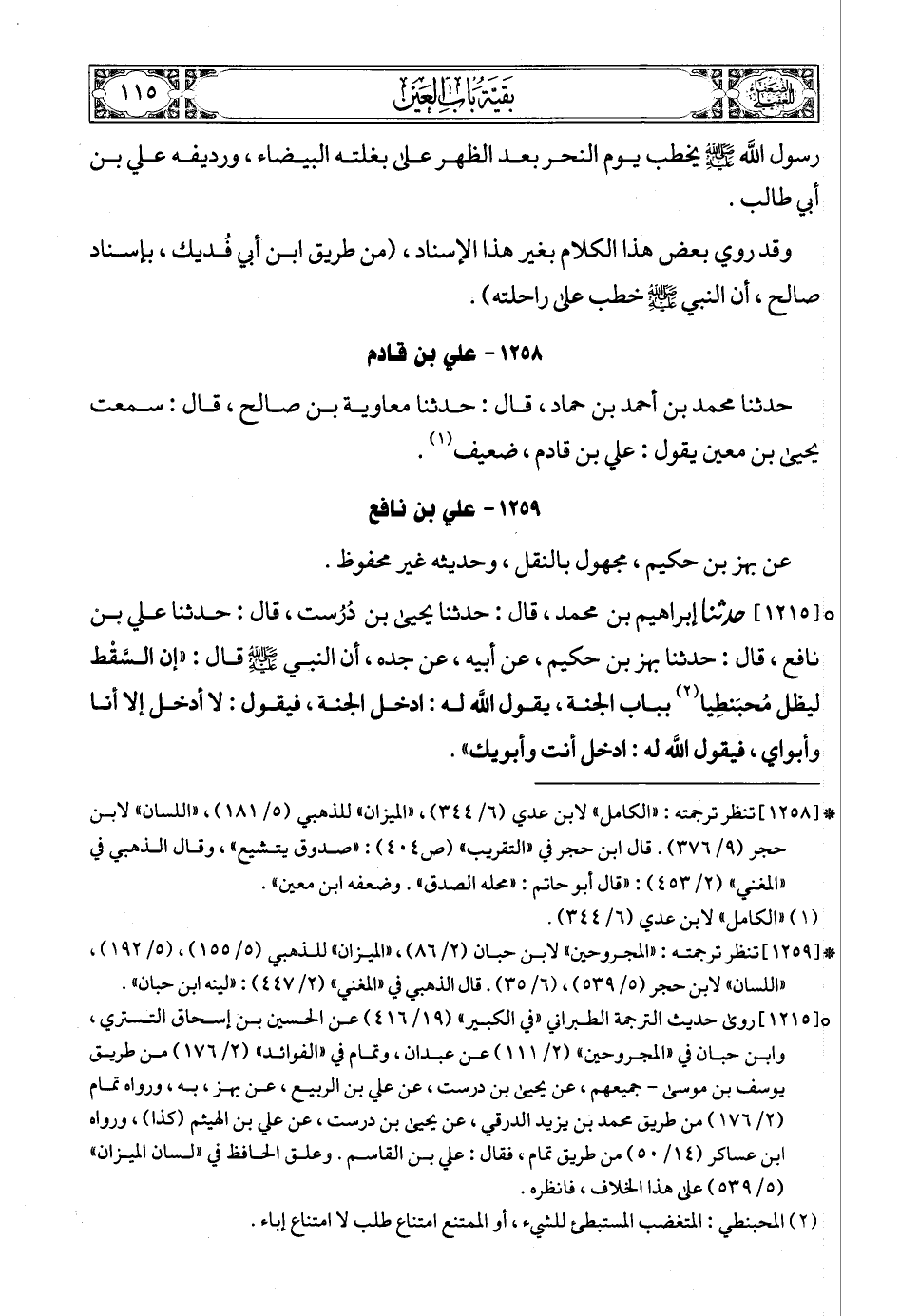 [1214] (3) حدثنا إبراهيم بن الحسين، قال: حدثنا محمد بن حميد، قال: حدثنا علي بن مجاهد الكابلي، عن هلال بن هلال، عن أبيه، عن عمرو بن رافع المزني (4) قال: رأيت رسول الله صلى الله عليه وسلمع يخطب يوم النحر بعد الظهر على بغلته البيضاء، ورديفه علي بن أبي طالب.