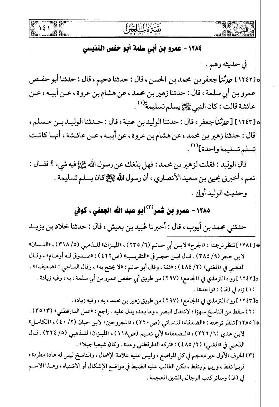 (1) * [1282] تنظر ترجمته: «المجروحين» لابن حبان (2/ 34) , «الميزان» للذهبي (5/ 316) , «اللسان» لابن حجر (6/ 209). قال ابن حجر في «التقريب» (ص422): «ضعيف» , وقال الذهبي في «المغني» (2/ 484): «وهاه ابن حبان وغيره».