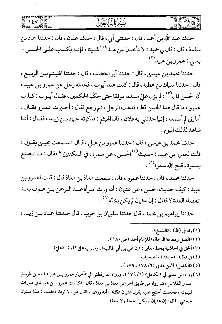 (3) وزاد في (ظ): «حدثنا محمد بن إبراهيم، قال: حدثنا مسلم، قال: حدثنا سلام بن أبي مطيع، قال: حدثني المكتوم عمرو بن عبيد»، والأثر أورده مسلم في المقدمة باب الكشف عن معايب الرواة (68)، وانظر: «العلل» لعبد الله بن أحمد (1/ 406).