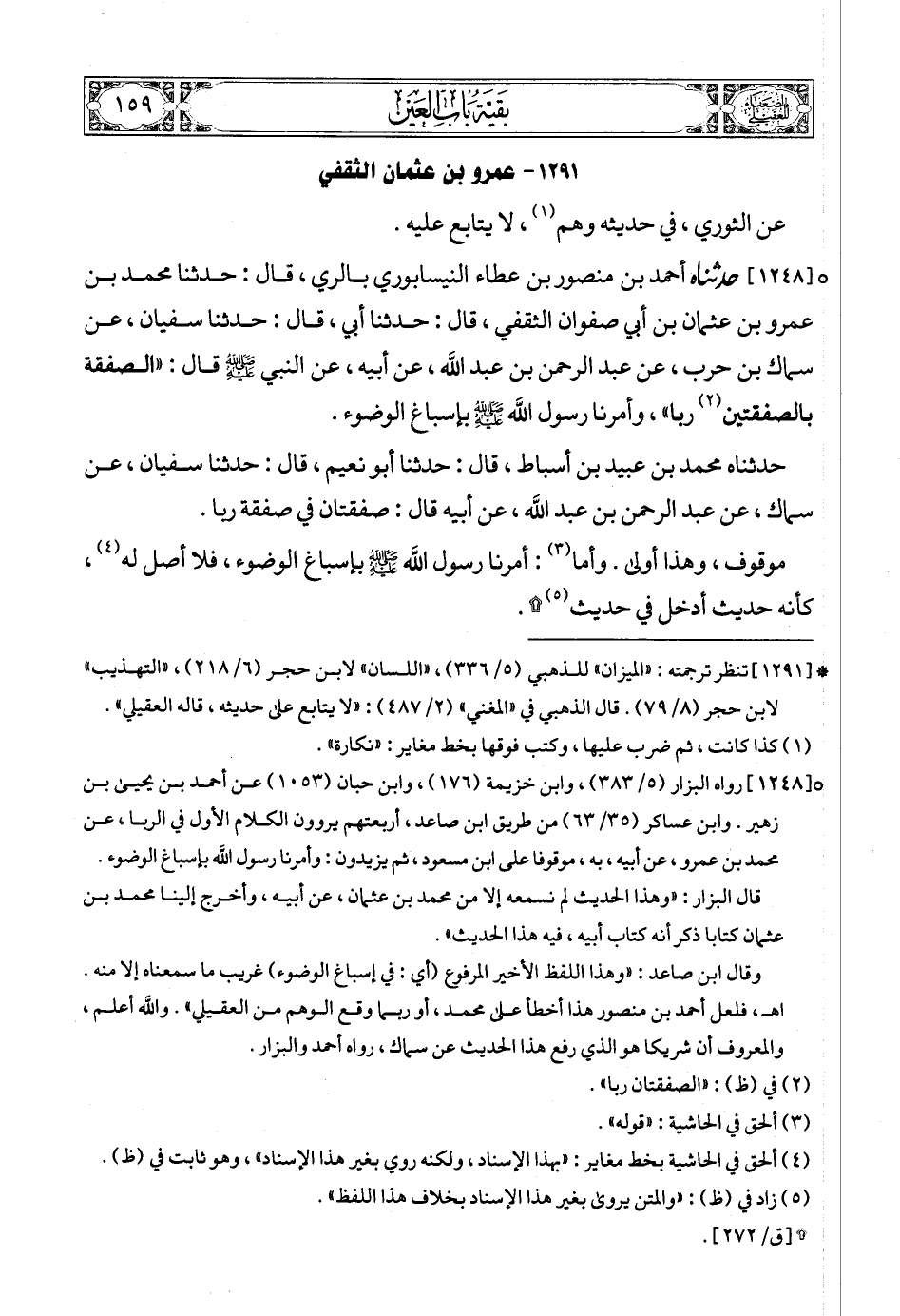 (5) * [1289] تنظر ترجمته: «الكامل» لابن عدي (6/ 243) , «الميزان» للذهبي (5/ 327) , «اللسان» لابن حجر (6/ 214). قال الذهبي في «المغني» (2/ 486): «قال ابن عدي: «روى عن عمه مناكير»».