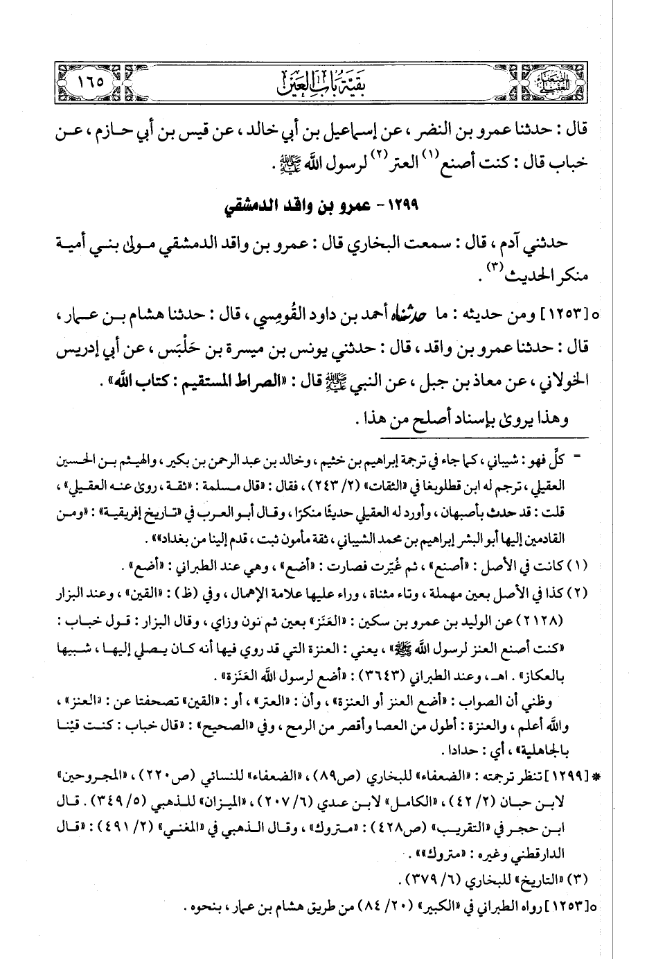 (3) * [1296] تنظر ترجمته: «الكامل» لابن عدي (6/ 210) , «الميزان» للذهبي (5/ 346) , «اللسان» لابن حجر (9/ 386). قال ابن حجر في «التقريب» (ص427): «صدوق له أوهام» , وقال الذهبي في «المغني» (2/ 490): «قال أحمد: «فيه ضعف»، وقواه غيره، وقال ابن معين: «ليس بالقوي»».