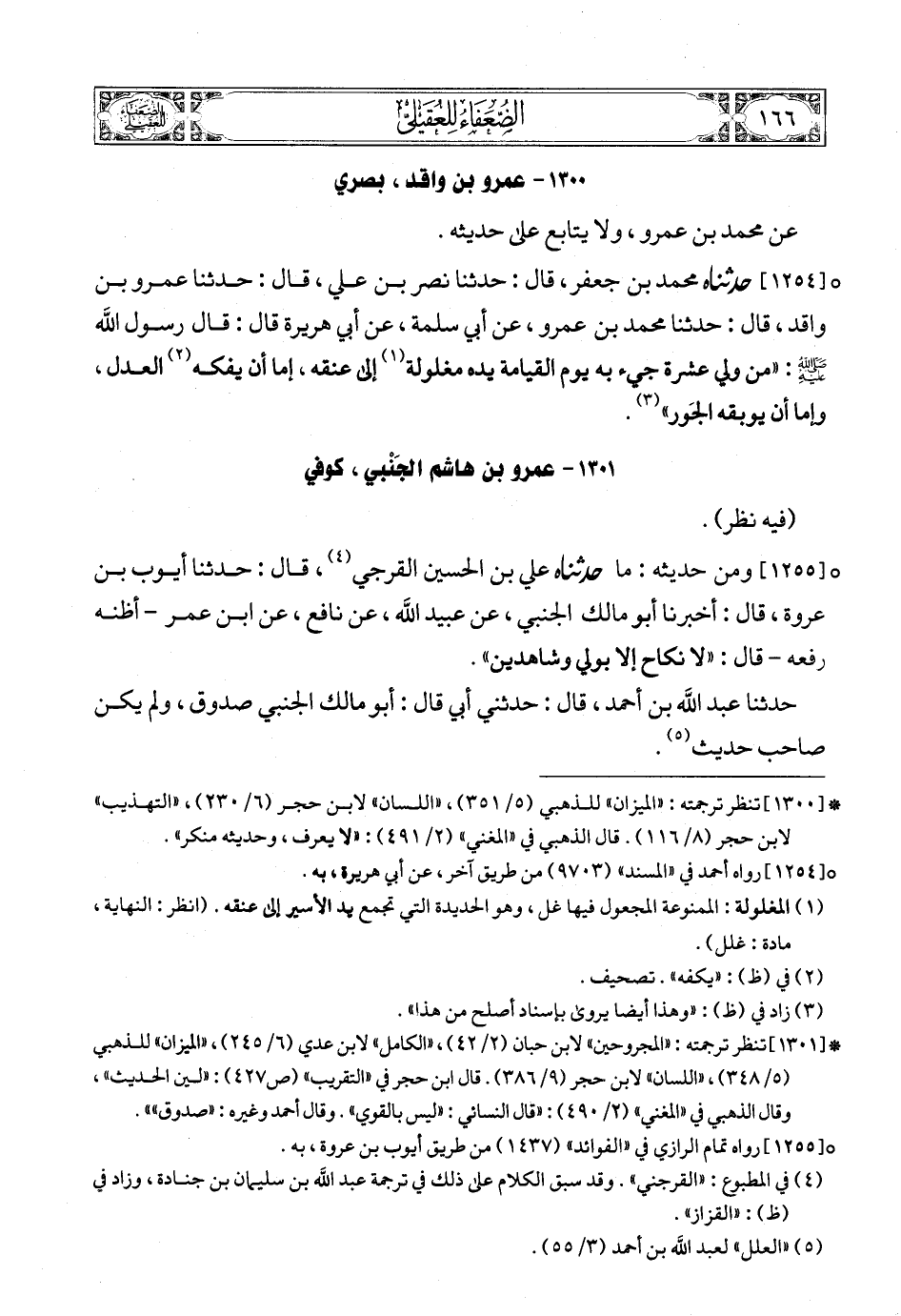(5) * [1298] تنظر ترجمته: «الثقات لابن حبان» (7/ 230)، «الميزان» للذهبي (5/ 348) , «اللسان» لابن حجر (6/ 230). قال الذهبي في «المغني» (2/ 490): «مجهول».