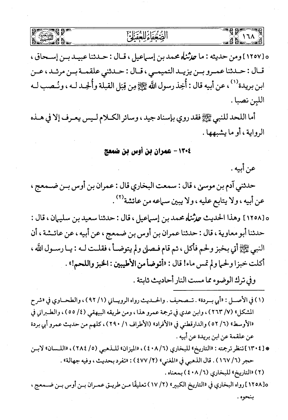 (1) * [1300] تنظر ترجمته: «الميزان» للذهبي (5/ 351) , «اللسان» لابن حجر (6/ 230)، «التهذيب» لابن حجر (8/ 116). قال الذهبي في «المغني» (2/ 491): «لا يعرف، وحديثه منكر».