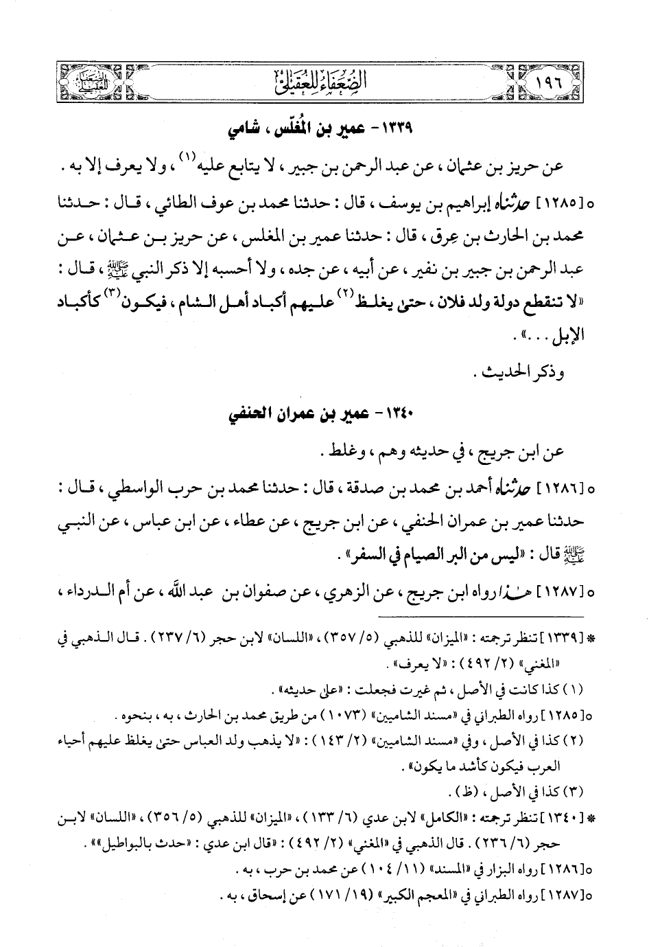 (1) * [1335] تنظر ترجمته: «الميزان» للذهبي (5/ 214) , «اللسان» لابن حجر (6/ 59). قال الذهبي في «المغني» (2/ 461): «لا يعرف».