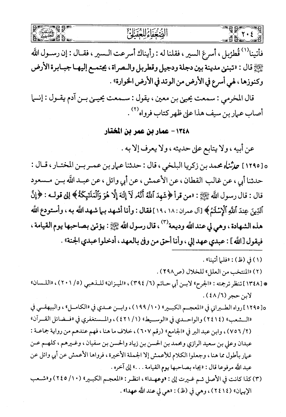 (2) قال الذهبي في «الميزان»: «وما علمت أحدا تكلم فيه إلا العقيلي، فتعلق عليه بما سأله أبو بكر بن عياش: أسمعت من سعيد بن جبير ؟ قال: لا. قال: فاذهب».