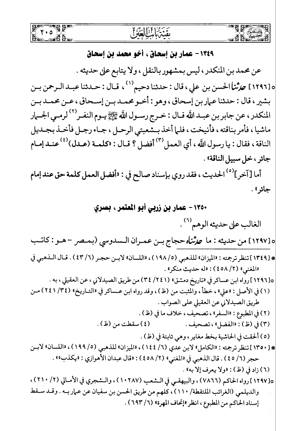 (4) * [1347] تنظر ترجمته: «المجروحين» لابن حبان (2/ 188) , «الكامل» لابن عدي (6/ 135) , «الضعفاء» لأبي نعيم (ص121) , «الميزان» للذهبي (5/ 200) , «اللسان» لابن حجر (9/ 377). قال ابن حجر في «التقريب» (ص407): «ضعيف الحديث، عابدا» , وقال الذهبي في «المغني» (2/ 459): «ضعفه أبو حاتم وغيره».