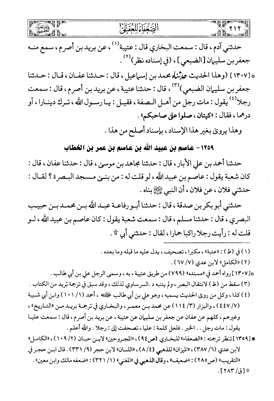 (9) * [1357] تنظر ترجمته: «الجرح» لابن أبي حاتم (7/ 12)، «الميزان» للذهبي (5/ 36) , «اللسان» لابن حجر (5/ 367). قال الذهبي في «المغني» (2/ 422): «قال العقيلي: «في حديثه وهم»».