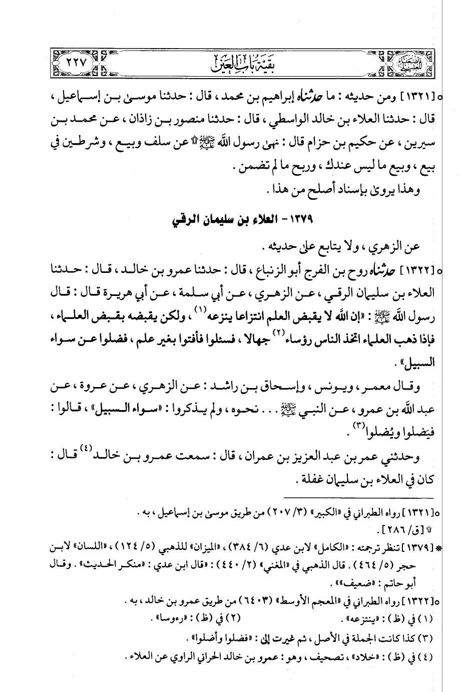 (3) * [1376] تنظر ترجمته: «الجرح» لابن أبي حاتم (6/ 361)، «الميزان» للذهبي (5/ 130) , «اللسان» لابن حجر (5/ 468). قال الذهبي في «المغني» (2/ 441): «فيه جهالة، ذكره العقيلي».