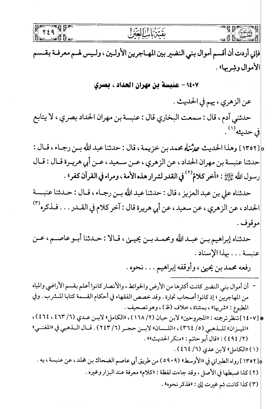 (3) * [1404] تنظر ترجمته: «الكامل» لابن عدي (7/ 94) , «الميزان» للذهبي (5/ 81) , «اللسان» لابن حجر (5/ 426). قال الذهبي في «المغني» (2/ 432): «قال البخاري: «منكر الحديث»».