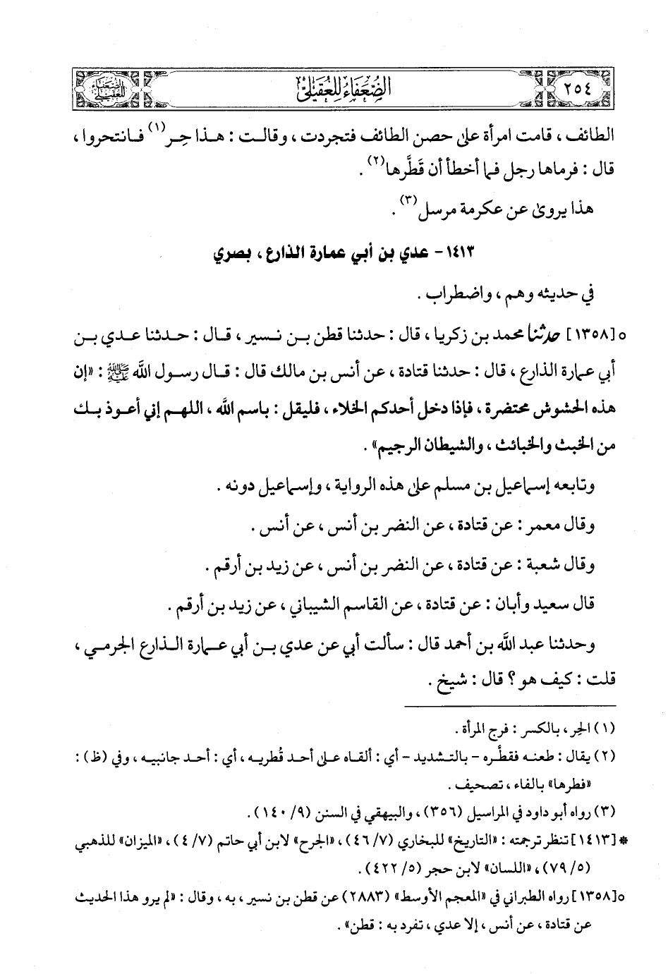 (2) * [1411] تنظر ترجمته: «الميزان» للذهبي (5/ 359) , «اللسان» لابن حجر (6/ 237). قال الذهبي في «المغني» (2/ 493): «لا يعرف».