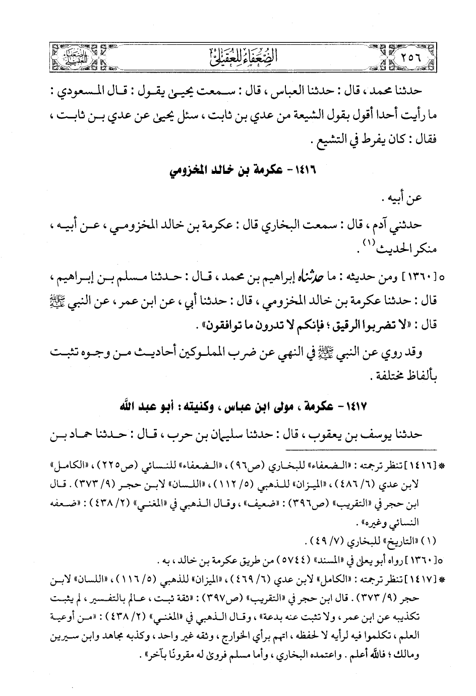(4) * [1413] تنظر ترجمته: «التاريخ» للبخاري (7/ 46)، «الجرح» لابن أبي حاتم (7/ 4)، «الميزان» للذهبي (5/ 79) , «اللسان» لابن حجر (5/ 422).