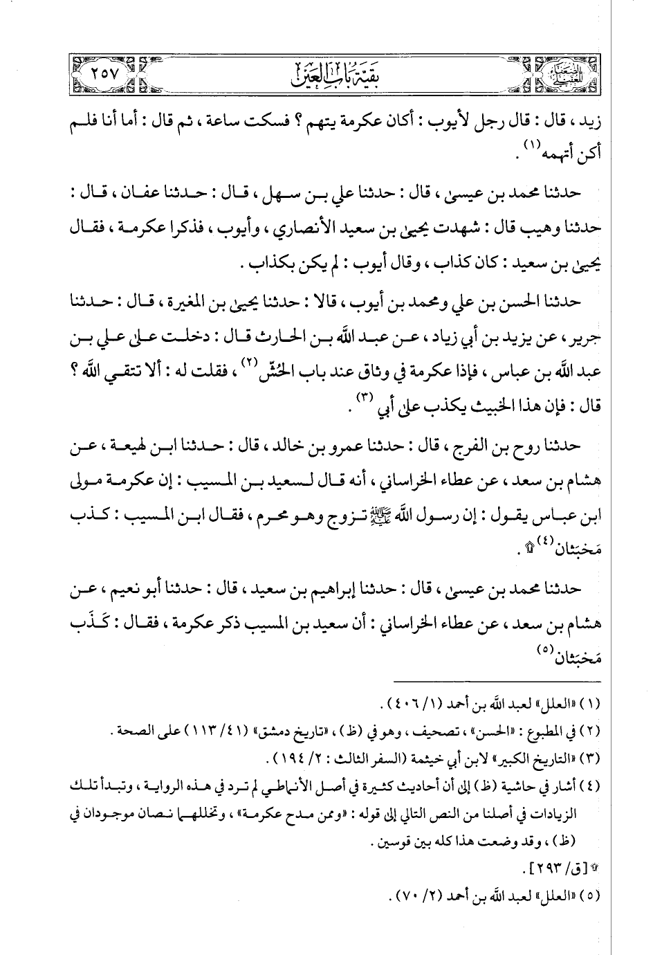 (5) * [1415] تنظر ترجمته: «الجرح» لابن أبي حاتم (7/ 2)، «الميزان» للذهبي (5/ 78) , «اللسان» لابن حجر (9/ 370). قال ابن حجر في «التقريب» (ص388): «ثقة، رمي بالتشيع» , وقال الذهبي في «المغني» (2/ 431): «تابعي، كوفي، شيعي جلد، ثقة مع ذلك. وكان قاص الشيعة، وإمام مسجدهم. قال المسعودي: «ما أدركنا أحدًا أقول بقول الشيعة من عدي بن ثابت». وقال ابن معين: «شيعي مفرط». وقال الدارقطني: «رافضي غال»».