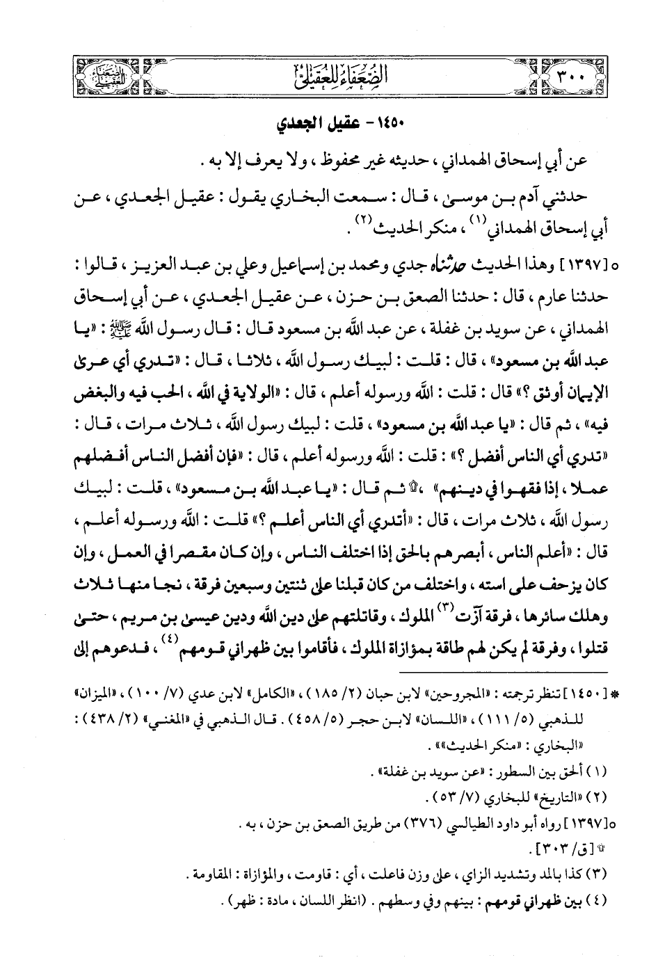 (2) قال الذهبي في «ميزان الاعتدال»: «وذكره العقيلي في «الضعفاء» متشبثا بهذه الحكاية التي رواها حماد بن زيد عن أيوب: حدثني القاسم بن عاصم، قلت لسعيد بن المسيب: إن عطاء الخراساني حدثني عنك أن النبي صص أمر الذي واقع أهله في رمضان بكفارة الظهار، فقال: كذب، ما حدثته، إنما بلغني أن النبي صص قال له: «تصدق، تصدق»».
