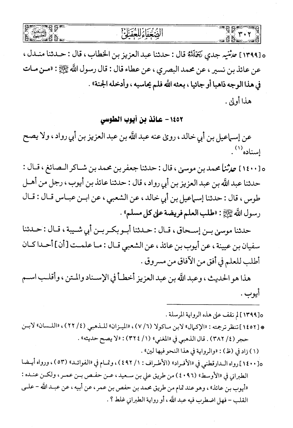 (2) * [1449] تنظر ترجمته: «الميزان» للذهبي (5/ 97) , «اللسان» لابن حجر (5/ 444).